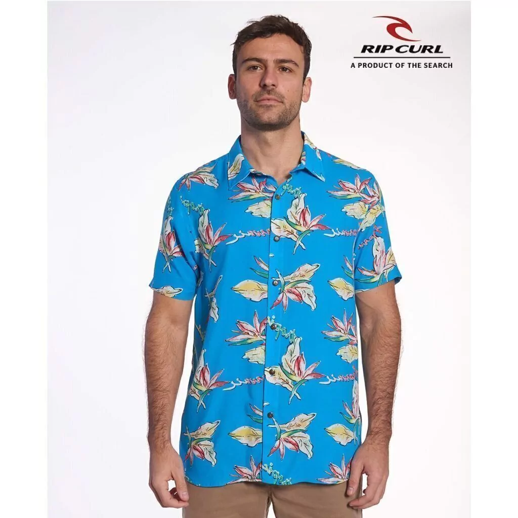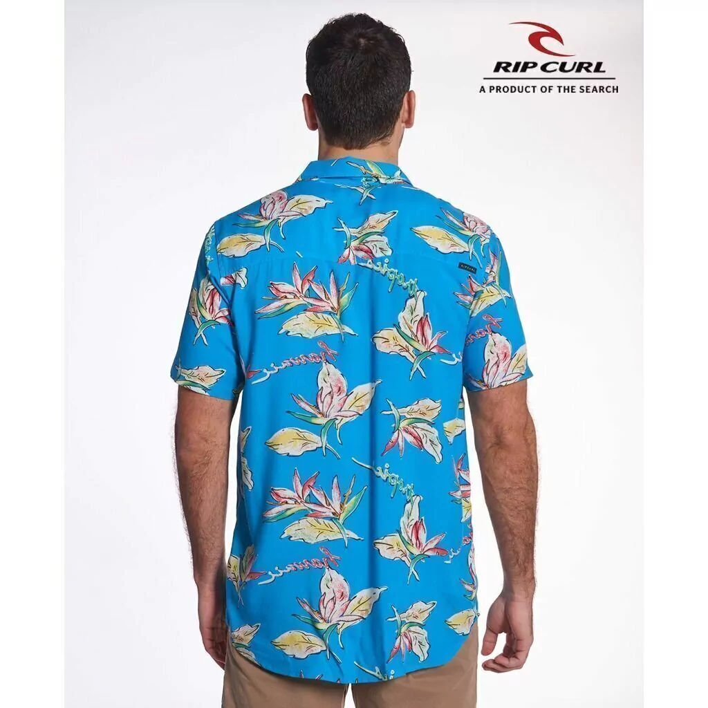 Camisa Rip Curl Hawaii Tropic de fibrana full print. Hawaian fit. Rever print. Botones a tono personalizados. Multietiquetas bordadas. 100% viscosa.