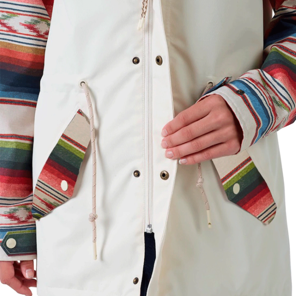La campera Burton Sadie combina estilo limpio con protección liviana frente a lluvias y climas variables. Confeccionada en tejido DRYRIDE 3K con tratamiento DWR sin PFC y certificación bluesign®, ofrece impermeabilidad funcional, costuras grabadas críticamente y tecnología Living Lining™ que regula la temperatura interna. Su diseño incluye cola caída ajustable para mayor cobertura y detalles prácticos para el uso diario.