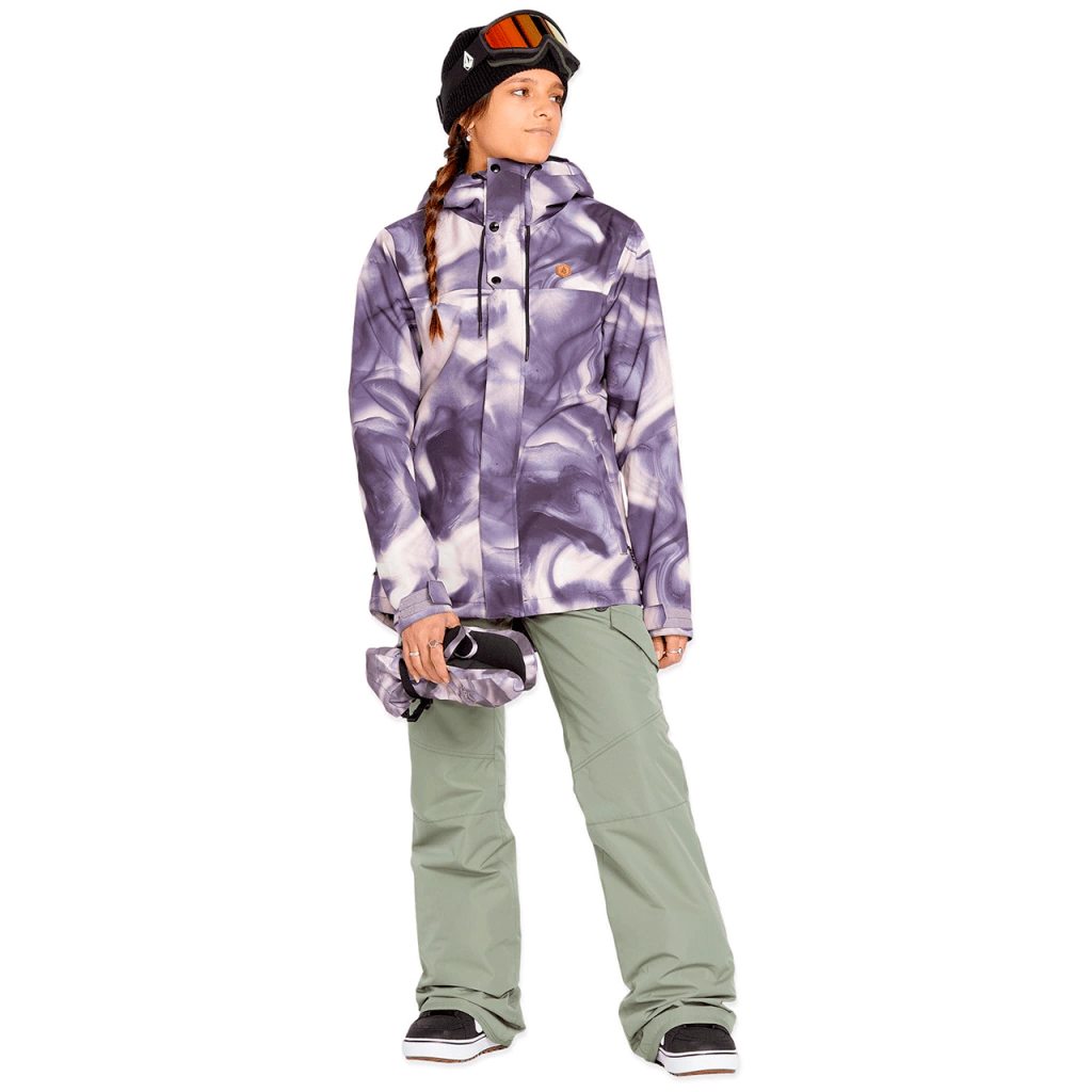 Campera Volcom Bolt Insulated. Mantén el frío encerrado con la campera de snowboard con aislamiento Bolt para mujer. Delgado y contorneado para una cobertura femenina, la construcción de 2 capas de V-Science se combina con 80 g de aislamiento para un rendimiento en climas húmedos y cálidos y la máxima comodidad. Las costuras selladas críticamente y nuestra chaqueta patentada Zip Tech® para la interfaz del pantalón funcionan juntos para el viejo uno-dos en protección impermeable. Una capucha con cincha de palanca oculta hace que sea fácil marcar esa cobertura adicional en movimiento y un protector de barbilla Super Suede lo mantiene suave en el interior.