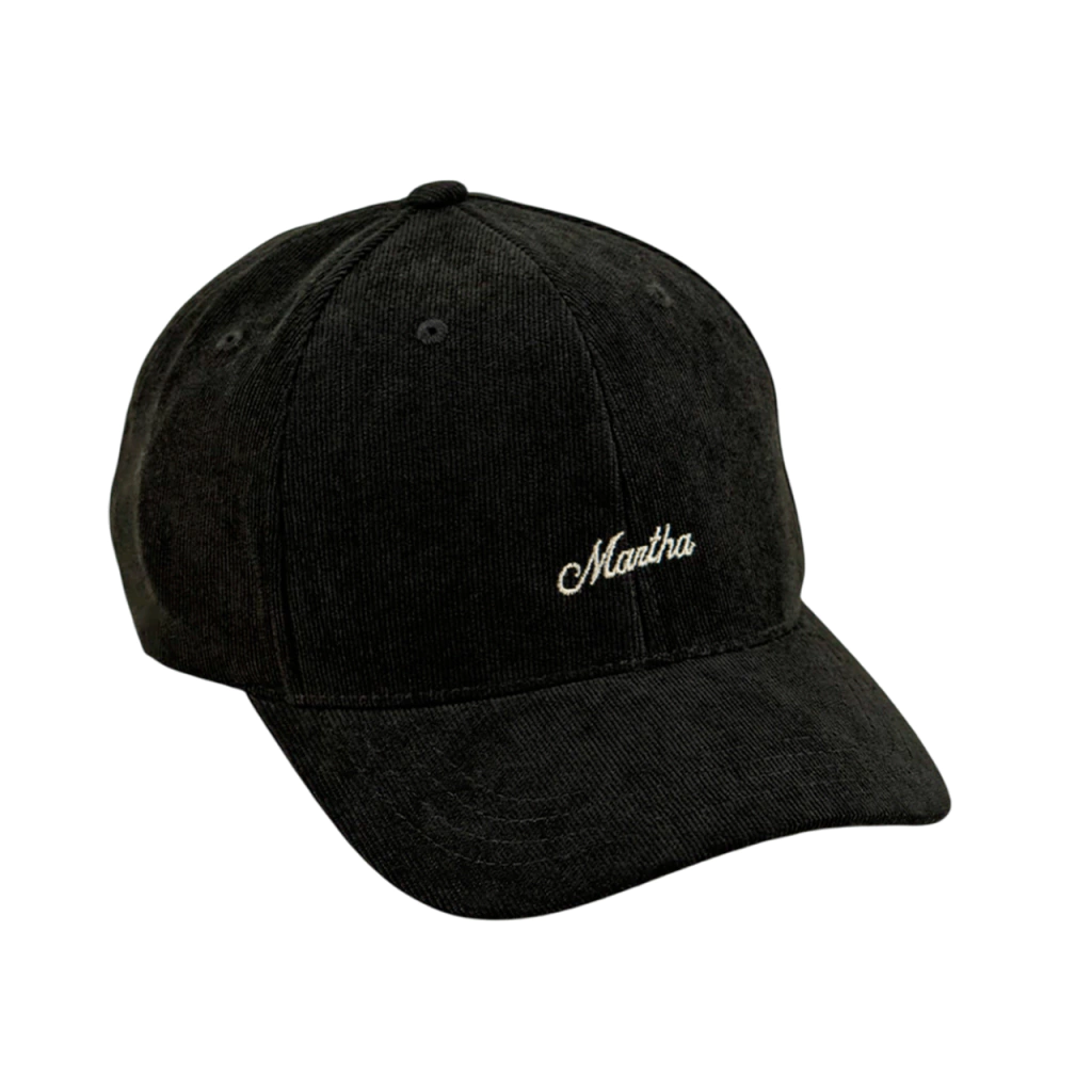 La Gorra Martha Franca Baseball Hat combina el estilo clásico del baseball con una inspiración natural única. Fabricada en corderoy color negro, ofrece una textura suave, estructura firme y un ajuste cómodo, ideal para el uso diario con un toque de elegancia casual.