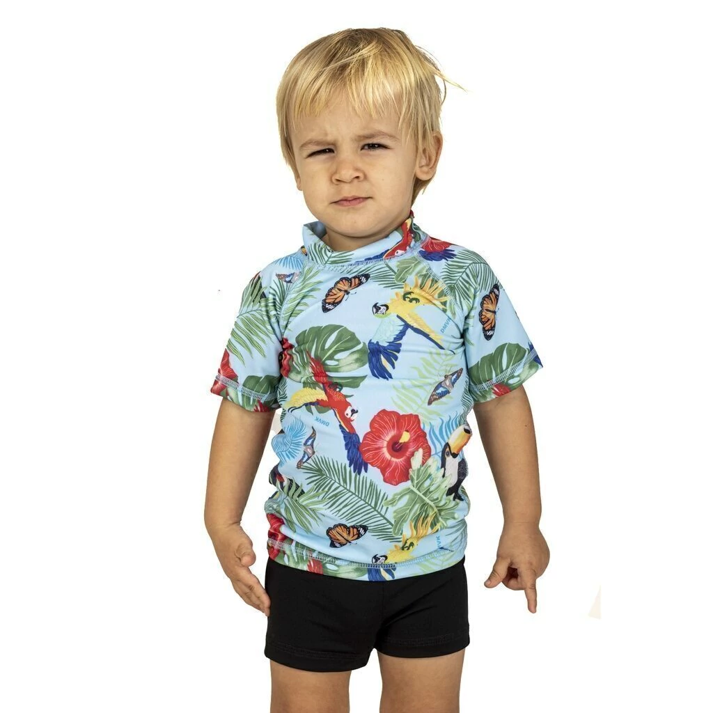 Nuestros productos están confeccionados con Lycra importada de calidad premium y fibra reciclada garantizando la durabilidad y protección para el cuidado de la piel de bebes y niñxs brindando protección UV 50, anti cloro y con gran elasticidad para facilitar su uso y postura.