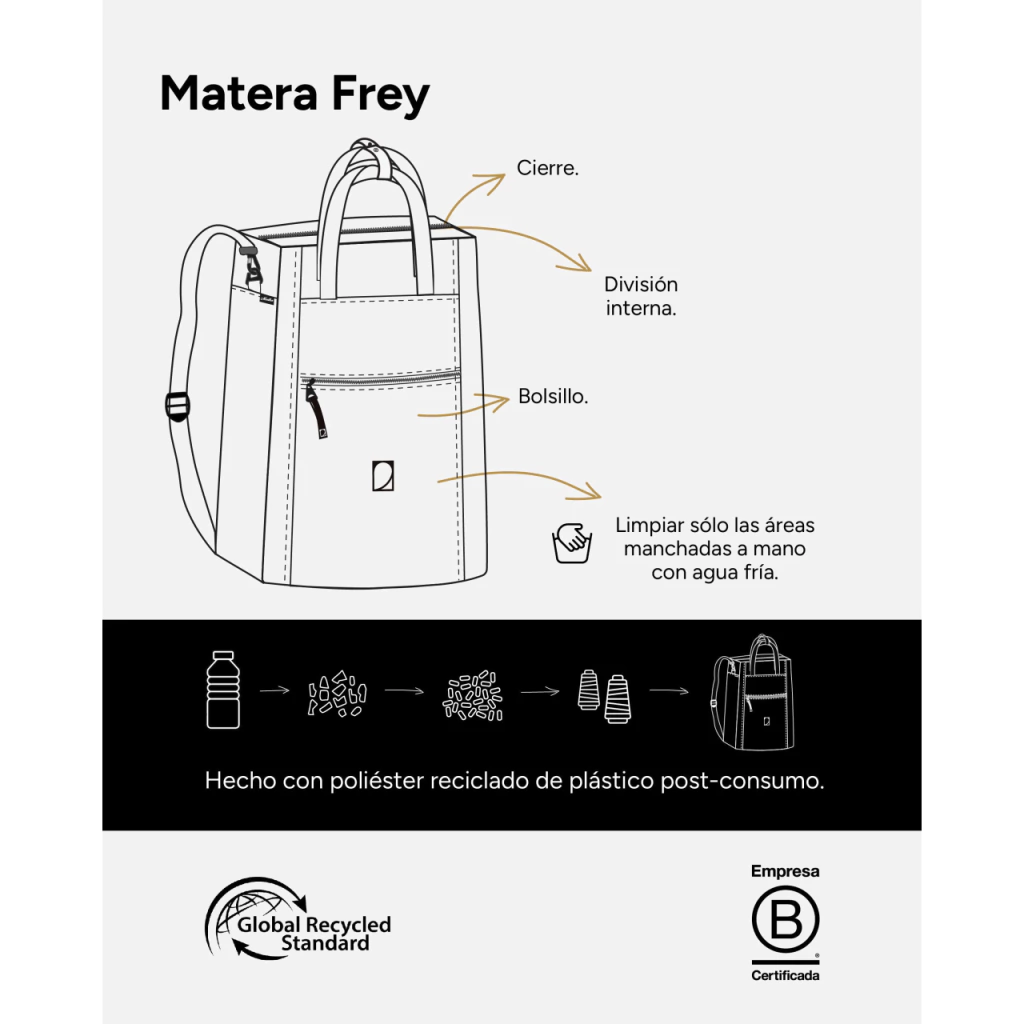 La Matera Frey I es ideal para llevar todo lo necesario con orden, confort y compromiso ambiental. Perfecta para uso diario, viajes o escapadas al aire libre.