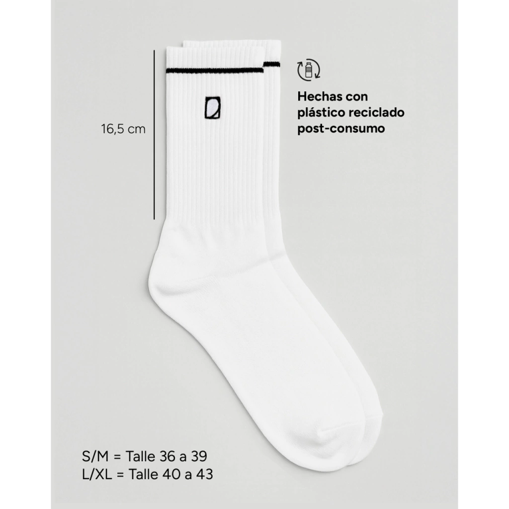 Las Medias Crew Blancas combinan comodidad, rendimiento y sustentabilidad. Confeccionadas en poliéster reciclado color blanco, ofrecen una textura suave, ajuste firme y una excelente transpirabilidad, ideales para el uso diario o entrenamientos.