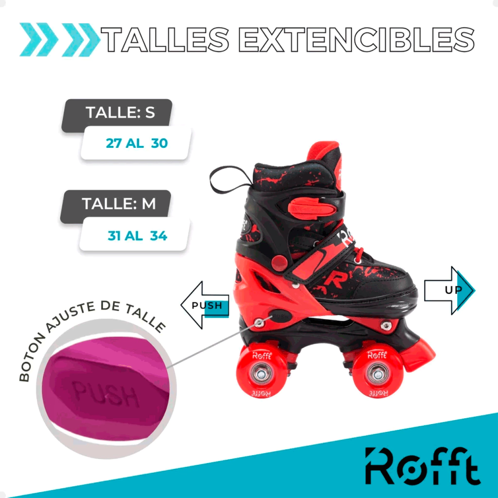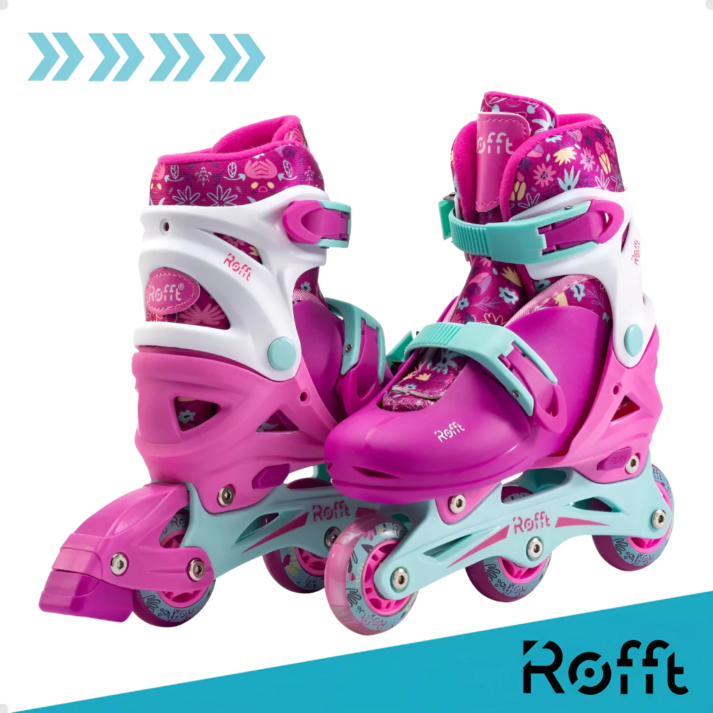 Patinaje liviano con talles extensibles: 27 / 28 / 29 / 30 / 31 / 32 / 33 / 34. Ruedas sólidas y freno PU. Bota semi-soft. Rulemanes ABEC 9. Colores disponibles: Rojo, Negro, Rosa. Para niños, nenas, nenes, unisex, sin género.