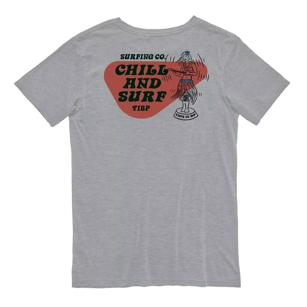 Remera MC cuello redondo. Jersey 30/1 esmerilado, gamuzado. Estampa a tres colores en frente y espalda. Tinta con base soft.