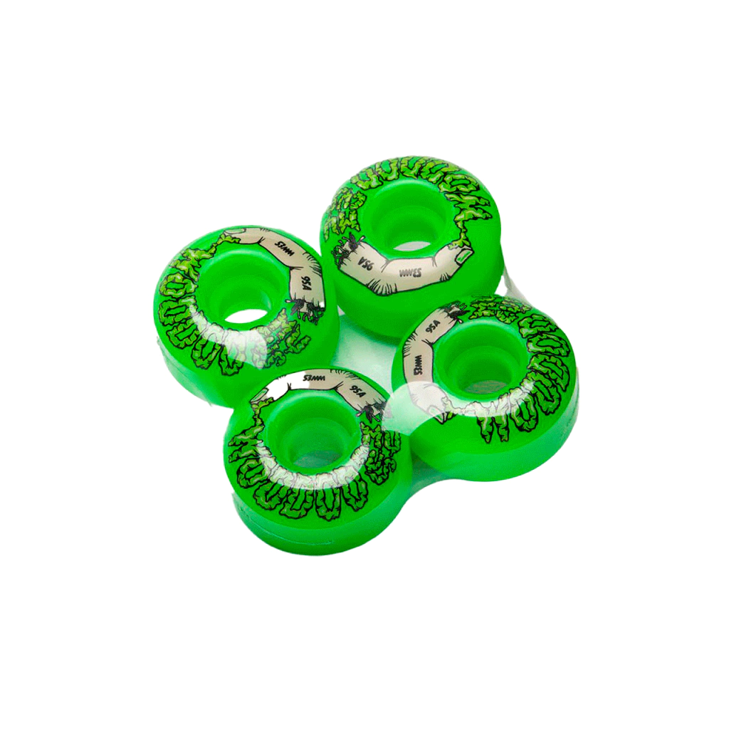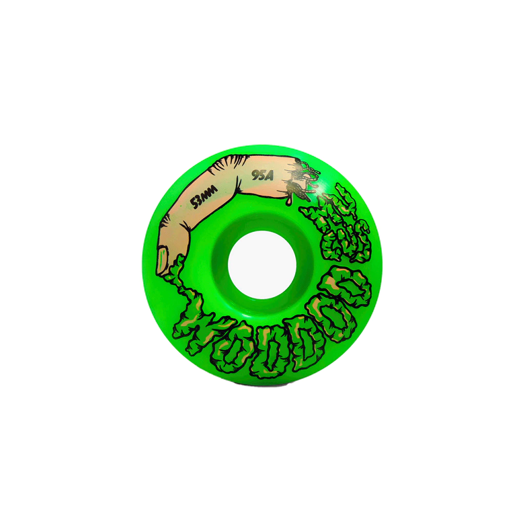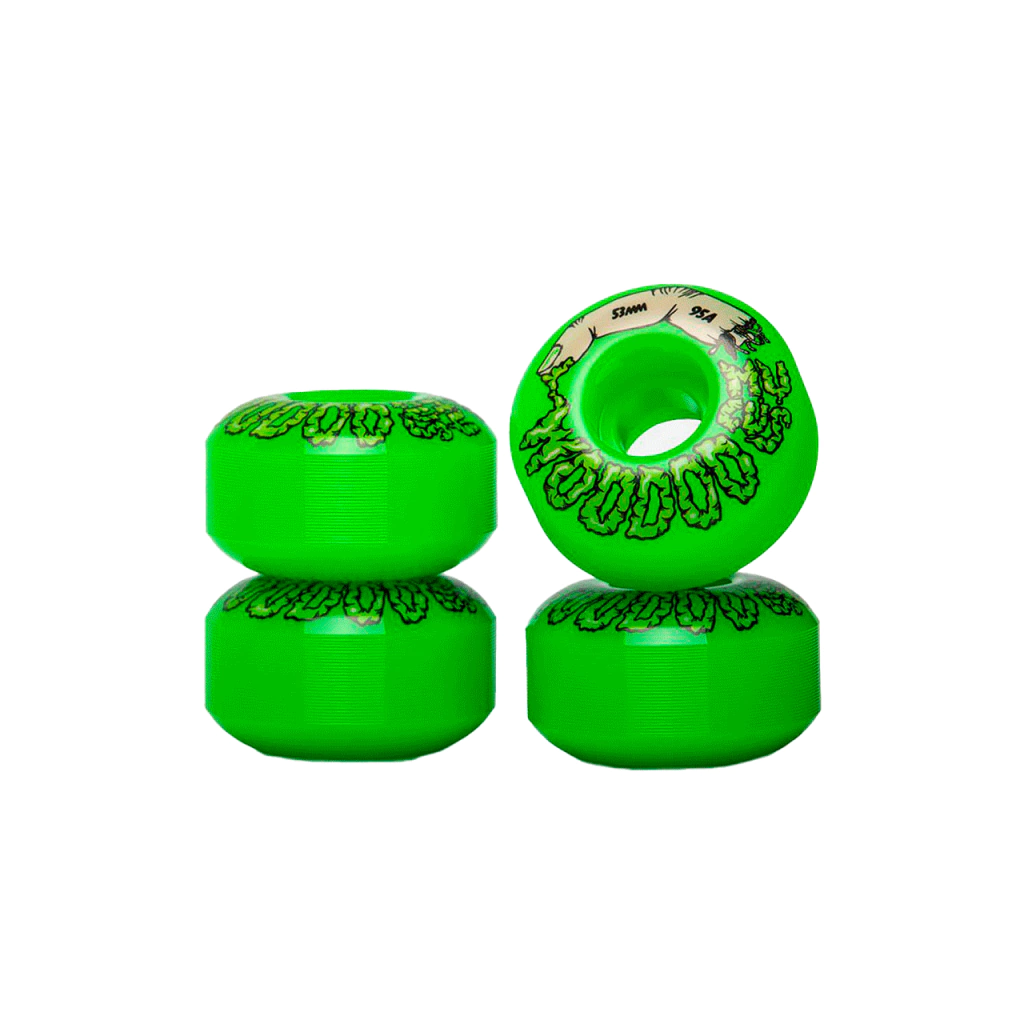 TERROR EN LAS CALLES. Mostrá tu faceta zombie con las ruedas Woodoo Mucus de dureza media/baja, diseñadas para brillar en cada truco y deslizarse con estilo fantasmal.