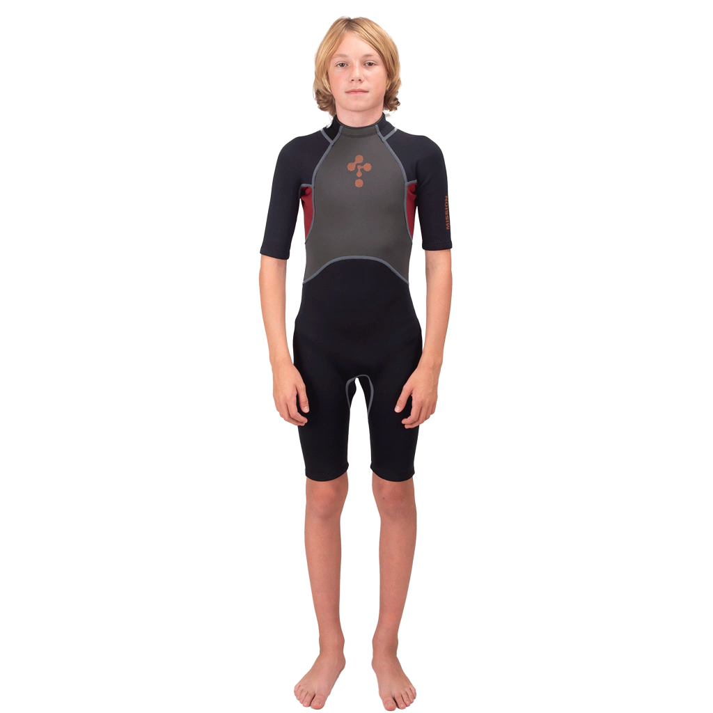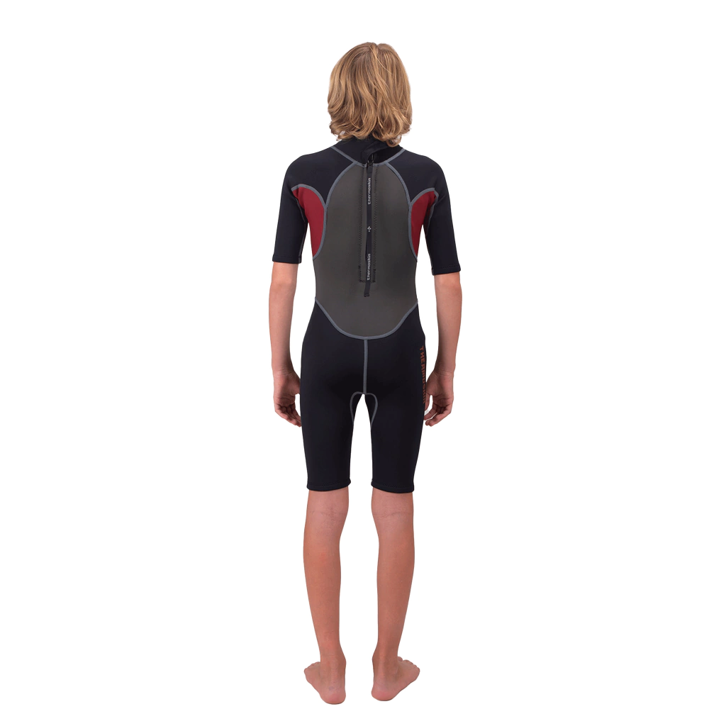 El traje Spring Mission para niños está diseñado para aguas a partir de los 18° Celsius, ofreciendo flexibilidad y libertad de movimientos sin comprometer el aislamiento térmico.