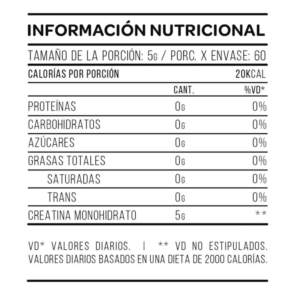 - Creatina Monohidrato: 100% pura y micronizada
