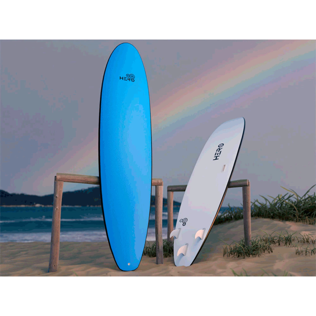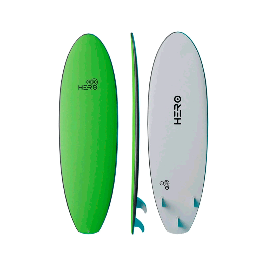 Las softboards Hero Frisbee son ideales para principiantes y también muy divertidas para aquellos con algo de experiencia en el surf. Están fabricadas con un material suave en el exterior, lo que ayuda a prevenir golpes y lesiones, especialmente para principiantes y niños. El modelo Frisbee 8'0", con un volumen de 87 litros, es perfecto para surfistas principiantes con un peso máximo de 120 kg.
