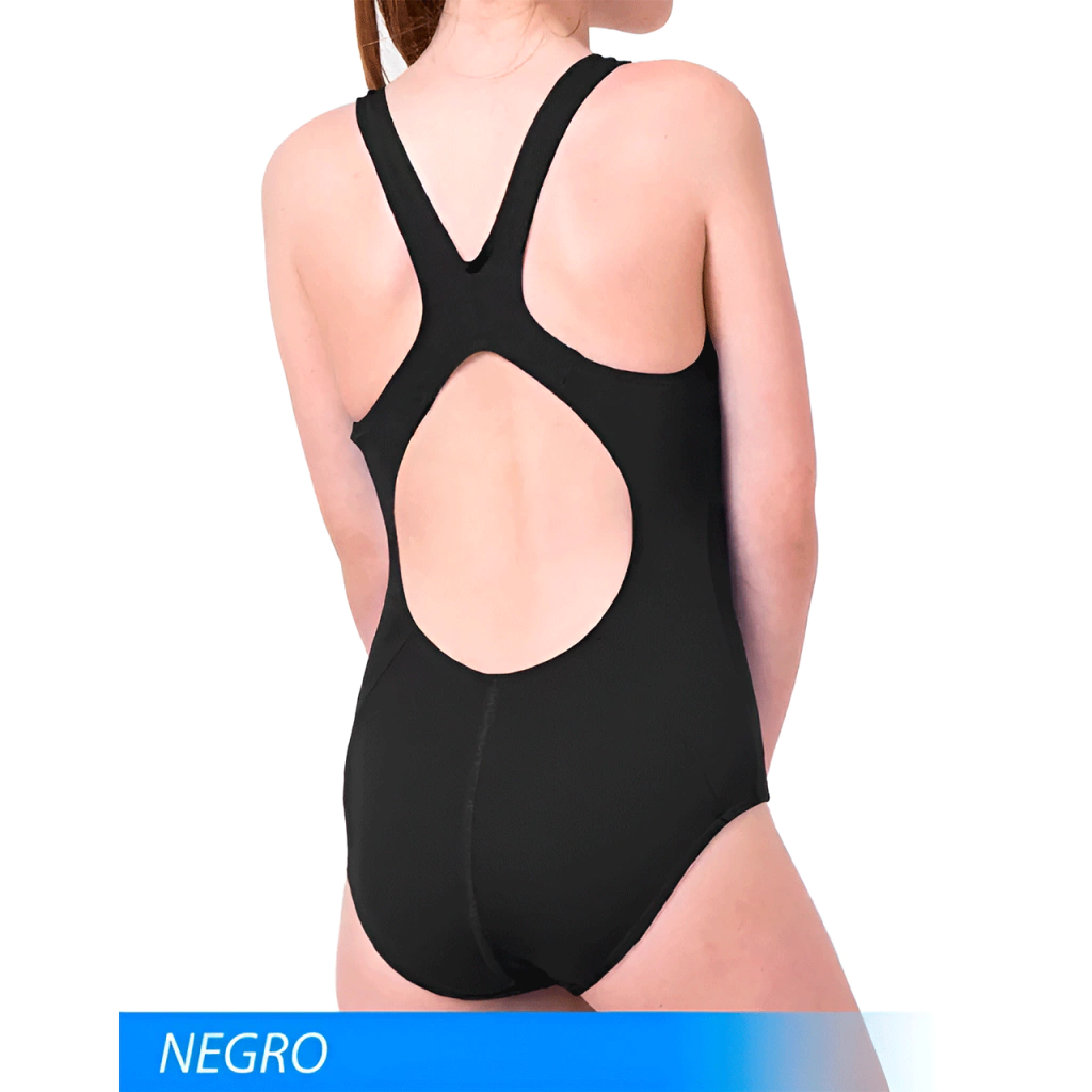Esta malla enteriza lisa para nena combina un diseño clásico de espalda cruzada que ofrece una excelente movilidad y mayor hidrodinamia. Sus costuras planas en el centro trasero minimizan el roce con la piel, evitando irritaciones y garantizando confort durante el nado.